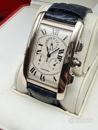 In occasione del Black Friday proponiamo uno dei modelli più iconici e ricercati della Maison Cartier: Tank Américaine Cronografo in oro bianco 18kt, un segnatempo elegante, ricco di storia e dall’estetica inconfondibile.
