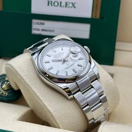 Proponiamo un Rolex Datejust 36, referenza 116200, con garanzia italiana del 2019, modello elegante e versatile, adatto a qualsiasi occasione.