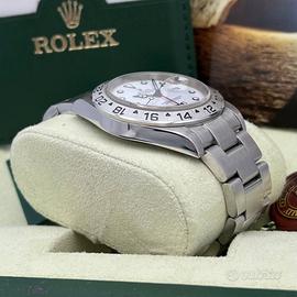 ⚪️Rolex Explorer II Polar Ref.16570 Anno 2006. Il Rolex Explorer II 16570 Polar è un orologio sportivo/avventura di fascia alta, prodotto dal 1989 al 2011. La versione con quadrante bianco “Polar” è particolarmente apprezzata dai collezionisti per il contrasto estetico e l’elevata leggibilità. 📌 Dettagli principali: 🟣Referenza: 16570 🟣Anno: 2006 🟣Condizione: Ottime Condizioni 🟣Materiale: Acciaio 🟣Quadrante: Bianco 🟣Movimento: Automatico Rolex 3185 🟣Vetro: Zaffiro 🟣Corredo: Full Set con scatola originale e documenti originali 💡I nostri orologi sono tutti controllati e revisionati dal nostro laboratorio. 🟣Revisionato 🟣Garanzia Conte di 24mesi dopo l'acquisto. 🔄 Valutiamo permute con orologi di pari livello o superiore, previo contatto e valutazione delle condizioni. 📍 Visione e ritiro su appuntamento. 🚚 Spedizione tracciata e assicurata in tutta Italia.