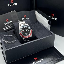 Proponiamo un Tudor Black Bay GMT, referenza 79830RB, modello del 2021 in eccellenti condizioni, dotato di funzione GMT e della caratteristica lunetta bicolore blu e rossa.
