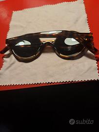 Cedo occhiali da sole unisex con lenti rotonde scure , di diametro 4,5 cm. e fusto di colore marrone. In condizioni perfette, mai indossati. Marchio: RAGTIME Fornisco anche porta occhiali rigido.