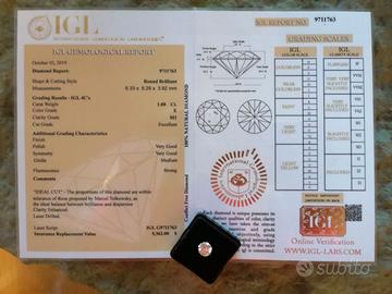 La pietra è accompagnata dal copia Certificato Gemmologico di Autenticità IGL (International Gemological Laboratories). Il numero del certificato potrà essere visionato direttamente online.