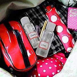 10 Flaconi da viaggio trasparenti riutilizzabili con tappo apri e chiudi di dimensioni adatte al viaggio in aereo, per contenere liquidi, cosmetici, lozioni, shampoo, balsamo, bagnoschiuma, creme solari, ecc.