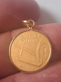 Cedo ciondolo originale in oro 750 creato appositamente nel 1970 come riproduzione del 10 LIRE.
