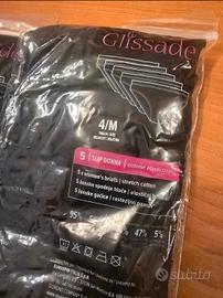 2 confezioni da 5 slip donna Glissade. - Taglia 4/M. - Colore nero. - Composizione: 95% cotone, 5% elastan (cotone elasticizzato). - Nuove. Confezione aperta solo per mostrare il modello.