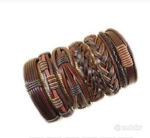10 PEZZI BRACCIALE MISTI UOMO DONNA PELLE CUOIO BRACCIALETTO INTRECCIATO.
