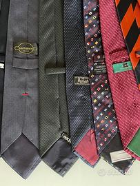 Insieme di 11 cravatte da uomo di tessuti, colori e marchi diverse.