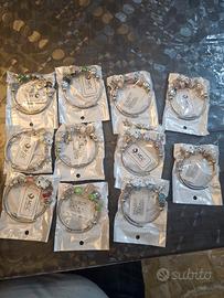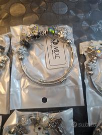 Vendo pacco intero di 12 pezzi Elegante bracciale riaido in acciaio, arricchito da charm pendenti e decorativi