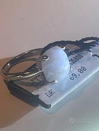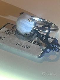 18 - Anello BLISS argento 925/00 - con agata azzurra naturale a taglio cabochon - nel gambo laterale e' incastonato un piccolo diamante naturale di carati 0,005 misura mm 16,5 - 15,5 di diametro con garanzia originali BLISS, prezzo di cartellino Bliss (annesso) euro 69,00