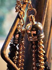 raro Girocollo corto a 9 fili con perline sfaccettate in vetro nero e catene a maglie color oro. collana vintage anni 70 in perfette condizioni come nuova , lunghezza cm 50 peso 63 grammi.