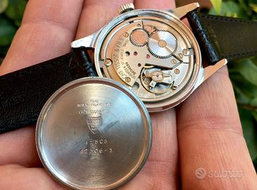 Cassa mai lucidata da 35 millimetri ad esclusione della corona di carica,corona di carica originale,splendido dial e sfere originali,datario ad ore tre ok,movimento originale a carica manuale swiss made cal.782 perfettamente funzionante e con buona tenuta del tempo e riserva di carica,cinturino originale,fibbia generica,scatola originale,non possiedo card garanzia