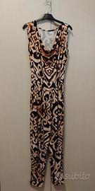 Abito estivo donna tema Sicilia con fiori e agrumi più tuta elegante estiva leggera e morbida fantasia tribale fondo nero. Misura S/M entrambe, vanno bene sia per taglia 42 che 44, essendo elasticizzati.