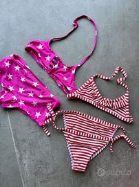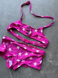 🌟 Modello fucsia con stelle bianche: vivace, con slip a pantaloncino e top con chiusura regolabile sulla spalla.