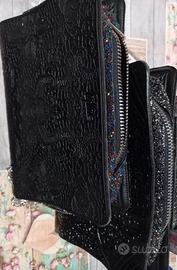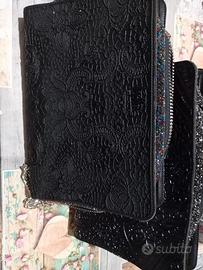 2 Borse libro lucida e opaca LEPLAS made in Italy con pailettes stampa pizzo