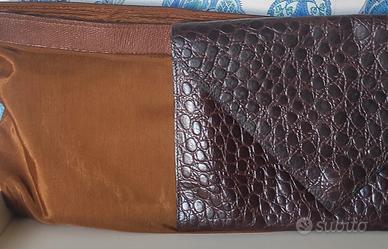vendo borsa a mano forma a busta colore marrone, pellame stampato simil cocco.