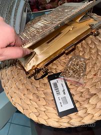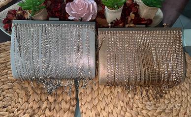 Vendo due borse di prima donna Presentano una pioggia di brintantini, una dorata e una argentata, con anche la loro catenina se si vuole mettere a tracolla , presentano un cerchio rigido se si vuole portare a mano . Veramente particolari e belle ! Ho utilizzato due volte l’argentata e mai la dorata quindi sono nuove, una presenta ancora il cartellino, ma con il tempo hanno perso lo stesso alcuni brillantini. Ma sono tenute al top essento praticamente NUOVE