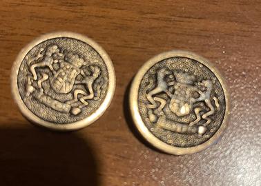 Set composto da 2 bottoni con lo stemma della Baviera ("Bayern"). Presenta un design color oro con un motivo a scacchiera coronato al centro, sostenuto da due leoni rampanti. Diametro cm 2,7