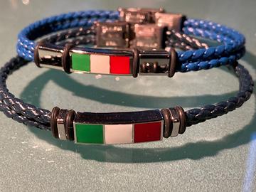 2 Bracciali nuovo stile marinaro, con accessorio in metallo bandiera Italia. Dimensioni aperto cm 20.