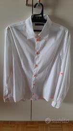 2 camicie cotone da bambino 11-12 anni, messe pochissimo. una ha dettagli e bottoni arancioni (Daniele Alessandrini); l'altra completamente bianca (SP1).
