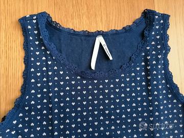 2 canottiere Tezenis da ragazza cotone blu con cuori e stelle 12-13Y