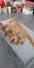 Set di due code di estensioni per capelli biondi.