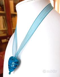 Set composto da 2 collane con pendenti artigianali in vetro di Murano, ciascuno caratterizzato da un cuore in vetro sospeso. 👉 Gioielli nuovi, mai indossati, provenienti direttamente dal laboratorio artigianale del maestro vetraio. 👉 Dimensione dei cuori: circa cm 3 x 3 👉 Alcuni modelli presentano raffinati dettagli in foglia oro, che donano luminosità ed eleganza Ogni pendente è montato su un nastro di organza largo circa 1 cm, utilizzato come girocollo, con chiusura finale in ottone decorativo. Oggetti eleganti e femminili, ideali come idea regalo originale oppure per arricchire il proprio stile con un accessorio distintivo. Ogni pezzo è unico, frutto della lavorazione artigianale del vetro di Murano. 👉 Ogni collana viene fornita con scatola portagioie elegante, ideale anche come confezione regalo. Vendita in coppia (2 pezzi nuovi).