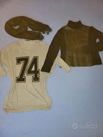 1 maglione nero collo alto con inserto in pelle davanti 1 maglia lunga grigia e nera Sisley 1 sciarpa nera in lana con frange