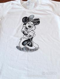 vendo 2 magliette uniche nel loro genere, dipinte interamente a mano con raffigurazione di Minnie in stile bianco e nero.