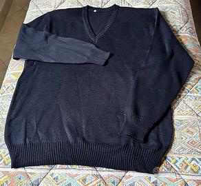 Due maglioni blu scuro con scollo a V, maniche lunghe invernali, taglia 62, 50% lana vergine e 50% acrilico, Made in Italy. Petto 67cm, lunghezza 78cm, lunghezza manica da spalla 66 cm.