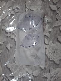 Set di 2 mascherine (adulti e bambini) per macchina da aerosol terapia, più accessorio per inalazione da bocca. Diametro forI 2,5 cm. Nuovi, mai usato. Ancora nel cellophane. Non ricordo la marca. Presentano i fori per inserire eventuale elastico se preferite (non presente in dotazione).