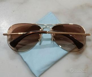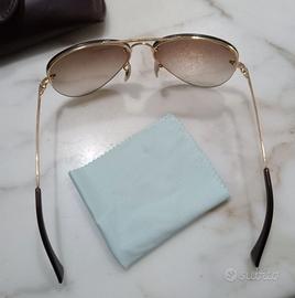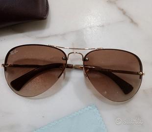 Vendo causa inutilizzo 2 paia di occhiali da sole Ray-Ban, codice modello RB3449 001/13 59-14, forma montatura pilot, colore montatura lucido oro arista, colore lente marrone sfumato, buone condizioni, completi di custodia e panno, presentano segni e usure di utilizzo su lenti e aste, astenersi perditempo.