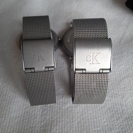 2 orologi CK in acciaio per donna e uomo; il cinturino da uomo ha un leggero difetto.