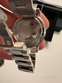 L’orologio con il cinturino in pelle è in ottime condizioni, usato solo poche volte…mentre l’orologio in acciaio, seppur in ottime condizioni, presenta delle piccole imperfezioni.