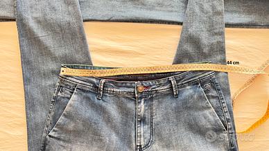 Vendo due paia pantaloni uomo blue jeans tg 52 identici ed usati, in buon stato di conservazione. Tasche laterali america, tasche posteriori a scomparsa.