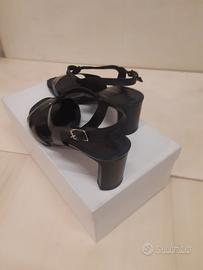 2.Sandali marca di Varese, modello aperto con inserto decorativo sul davanti e cinturino alla caviglia, tacco basso.