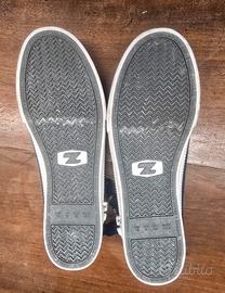 2 paia di scarpe da uomo, numero 43, colore blu e bianco, marca Zipz Shoes, con zip che permettono di cambiare soletta o tomaia abbinandone forme, materiali e colori diversi.