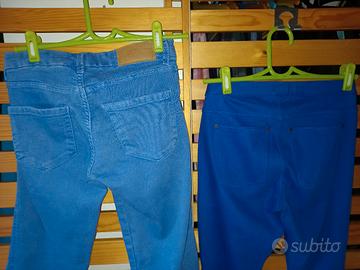 2 paia di pantaloni blu da donna modello stretto skinny taglia XS uno ha le cerniere alle caviglie