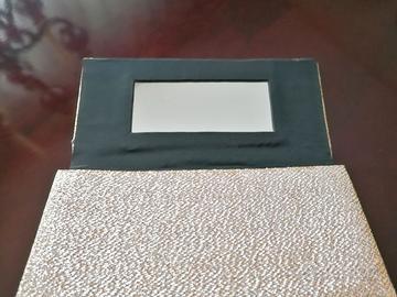 Vendesi 2 Pochette in fibra laminata, una dorata, una argentata. Come nuove, internamente quella dorata foderata con raso nero ha uno specchietto, quella argentata ha la fodera interna color ghiaccio. Ambedue 20 euro