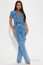 2 tute intere denim jeans Fashion Nova – L, NUOVE