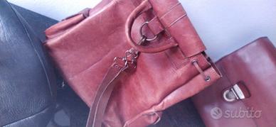 Zaino marrone in vero cuoio vintage manifattura fiorentina 35x33 usato ma in splendide condizioni, altro zaino nero praticamente nuovo 45x38 in vero cuoio grasso morbidissimo e spesso, bellissimo, più borsa 24ore porta documenti Spalding & Bros in vera pelle realmente nuova mai usata, molto bella e capace, tutto senza alcun difetto, tutto visibile senza impegno, disponibili altre foto, richiesta 70 euro cadauno i due zaini se acquistati in blocco, 80 euro la borsa, oppure valuto offerte, no perditempo grazie