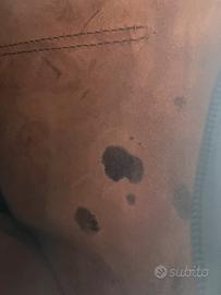 Ha una cerniera originale ed una no, la fodera interna è scucita, ha delle macchie all’interno sulla pelle (trattasi di liquido sigaretta elettronica).