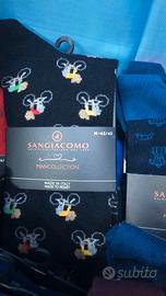28 paia di calze uomo fantasia Sangiacomo in morbidissimo caldo cotone di alta qualità. Lunghezza al ginocchio. Misure 39\41, 42/43, 44/46. Colori assortiti