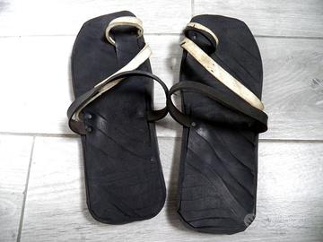 2X paia di ciabatte realizzate lavorando copertoni da camion - made in Africa - acquistate nel mercato di Owino a Kampala (Uganda) nel 2007. Taglia 45, ma vanno bene anche per chi calza 44 o 46. Lotto intero in vendita a 2 euro in totale.