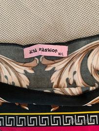 Blusa made in italy, con giochi di righe e cerchi rosse, nero e bianco Particolare design, per cui i laterali sono importanti Blusa Aerfan, nera con fenicotteri bianchi, plissettata, girocollo, senza maniche, cade molto bene Blusa Alba fashion, tagliata come un quadrato e tessuto ai laterali, oltre le cuciture Tutte tg L Tutte come nuove Tutte eleganti e raffinate