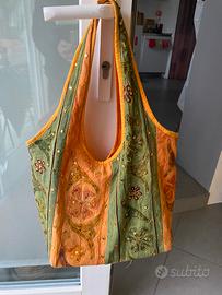 Stoffa verde arancione e ricami con specchietti misure 28-25-16