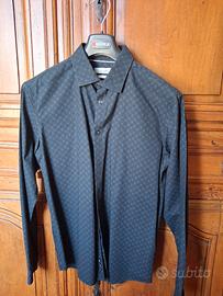 3 camicie uomo manica lunga: 1 blu tinta unita, 1 nera con micro fantasia grigio, 1 grigia micro fantasia