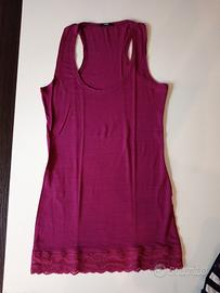 Canottiere Tezenis taglia S, modello aderente. Colori: viola, verde e floreale.