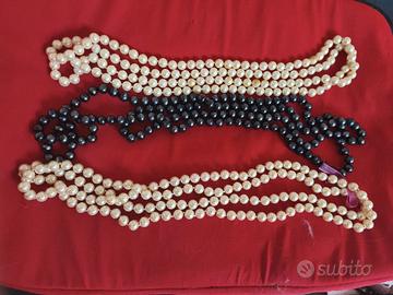 3 collane di perle 2 bianche e 1 nera diametro circa 130 l'una art 007