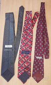 3 Cravatte Firmate, Made in ITALY , 100% Seta ed eseguite a mano. Da sx sulla foto principale: TRUSSARDI bordeaux a pois grigio usata 2 volte, Calvin KLEIN Collection color bronzo a righine nere diagonali usata 1 volta, UNGARO fantasia a rombi bordeaux oro e nero NUOVA mai usata . 11 euro a cravatta. 29 euro per tutte!