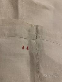 La terza ha una cucitura laterale a circa 50 cm dal bordo quindi ottenuto verosimilmente da un lenzuolo singolo a cui è stato aggiunto un pezzo. In condizioni buone, uno con un piccolo strappo laterale sono stati piegati per decenni e quindi hanno la riga scura della piega che andrà via lavandoli